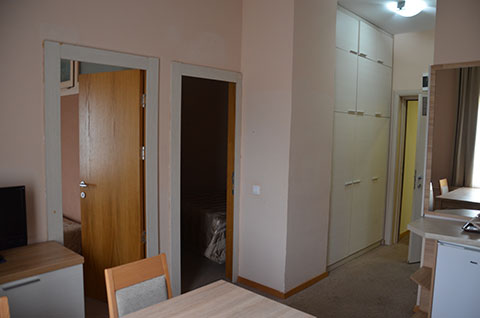 Studio 2+1 je najveći studio u ponudi, pogodan je za smeštaj tri do četiri osobe. Studio sadrži kupatilo (tuš), jedna manja prostorija sa 2 odvojena ležaja i sofom na razvlačenje za dve osobe.